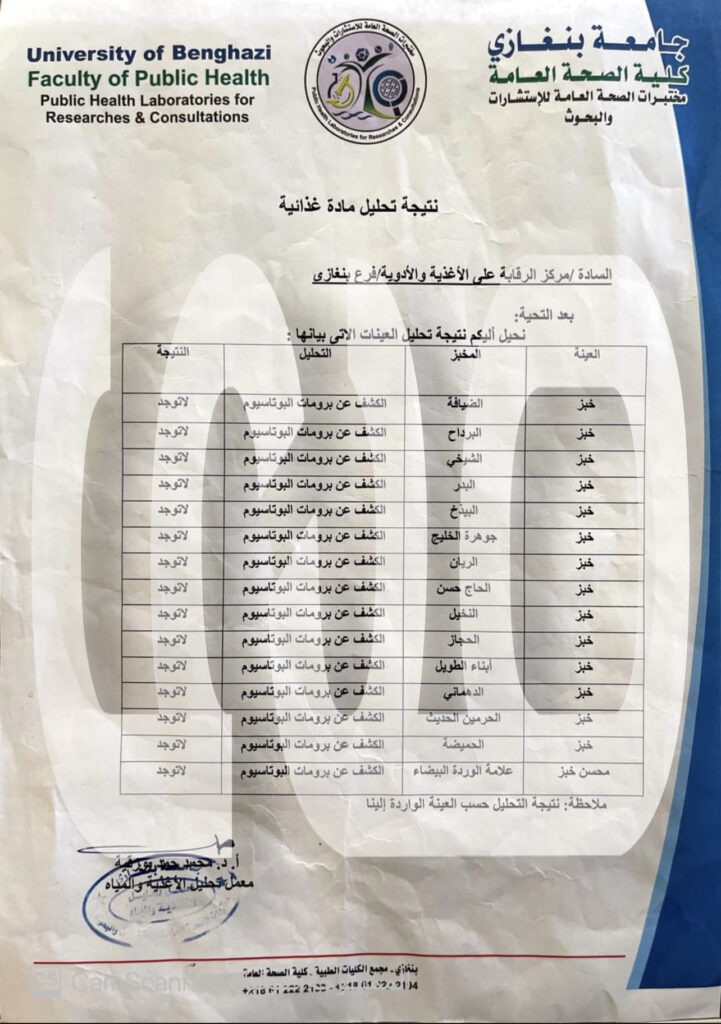 وفي ذات السياق تحصلت صحيفة صدى الاقتصادية حصرياً على كشوفات تخص مركز الرقابة على الأغذية الأدوية تثبت عدم إستخدام المخابز هذه المادة ..