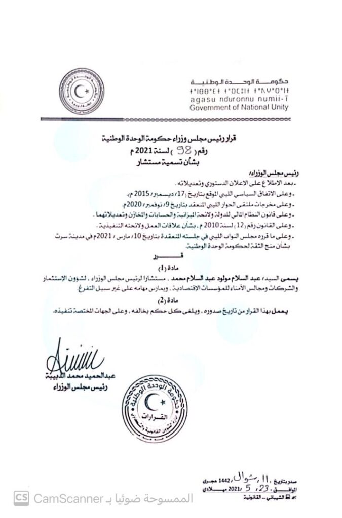 تضمنت المراسلة مطالبته بسحب قرارات تكليف عبد السلام مولود واستبعاده من وظيفة مستشار رئيس الحكومة لشؤون الاستثمار والشركات ومجالس الأمناء وكذلك استبعاده من عضوية الجمعية العمومية للشركة الليبية للكهرباء القابضة.