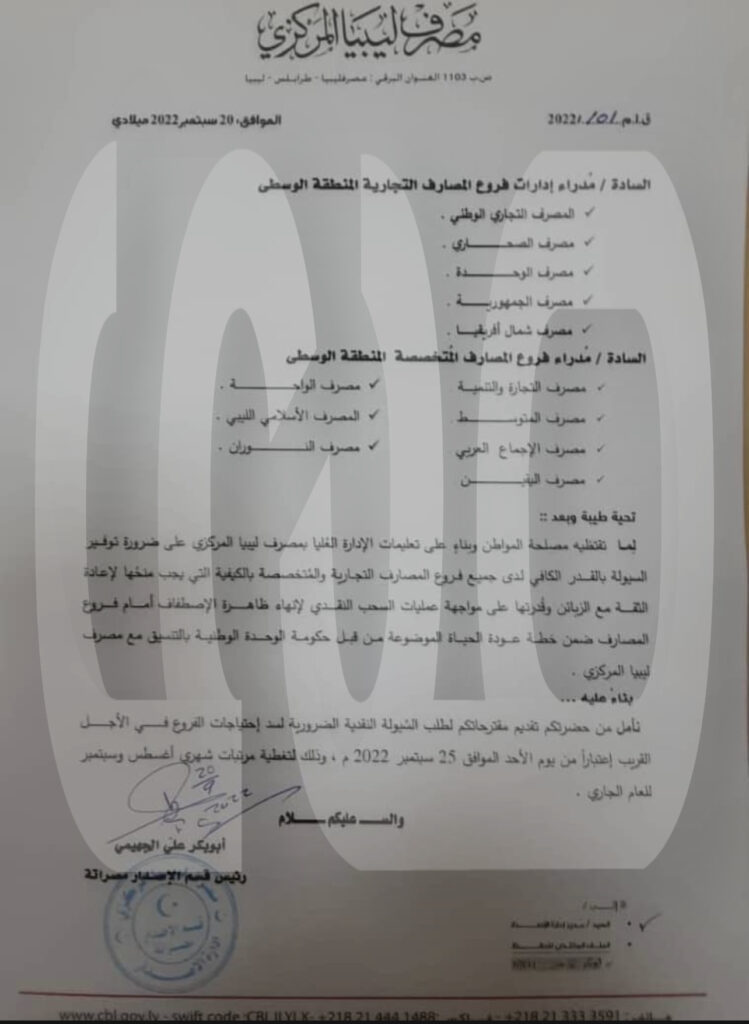 تحصلت صدى الاقتصادية حصرياً على مراسلة مدير إدارة الاصدار بمصرف ليبيا المركزي إلى المدراء العامون بالمصارف .