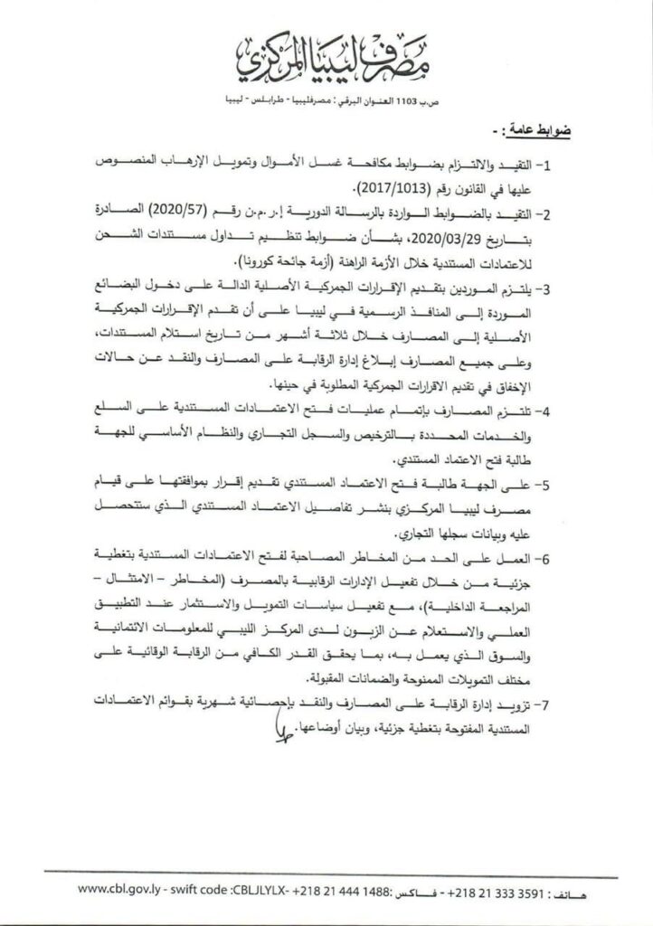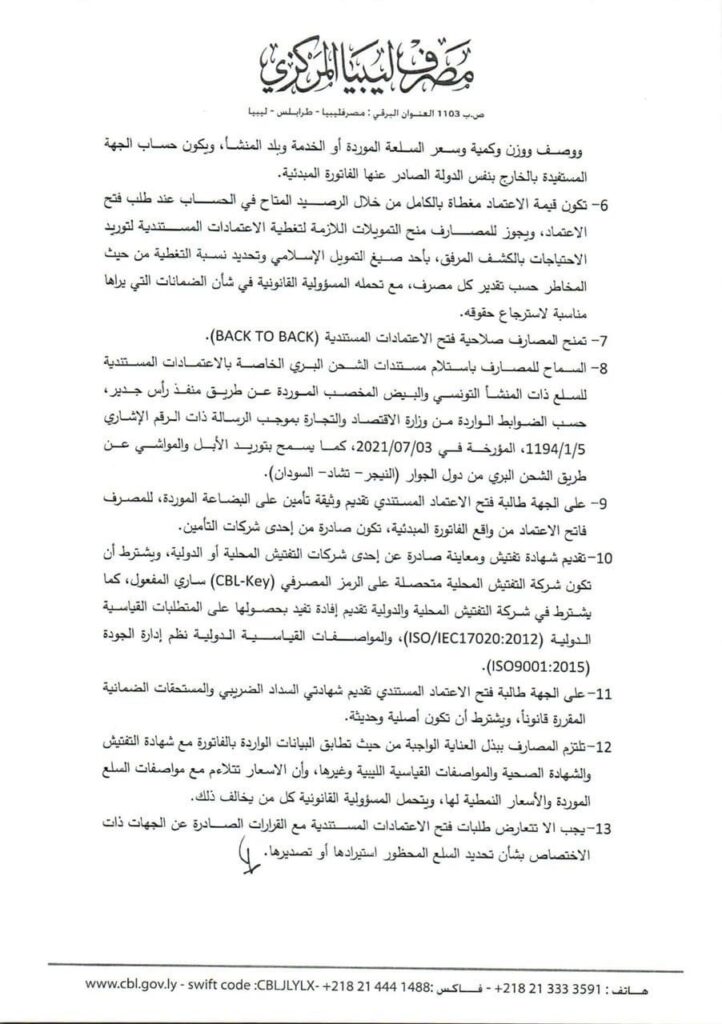أكد مصدر بمصرف ليبيا المركزي يؤكد لصحيفة صدى الاقتصادية أن الضوابط الجديدة الصادرة من مصرف ليبيا المركزي بشأن السماح للمصارف التجارية بتغطية الاعتمادات المستندية عن طريق تمويلات لقطاع الصناعة و بعض القطاعات الخدمية وغيرها تعد خطوة في الاتجاه الصحيح وفي التوقيت المناسب لتحريك عجلة الاقتصاد والانعاش الاقتصادي وتحريك قطاع الصناعة .