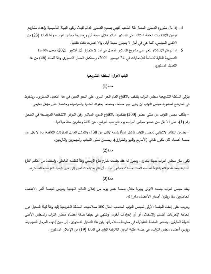 حيث قدمت أربعة مقترحات إلى البعثة الأممية بشأن تعديل القاعدة الدستورية، وأعادت البعثة ارسال المقترح المقدم من د. أكرم الجنين وفقاً للمصدر .