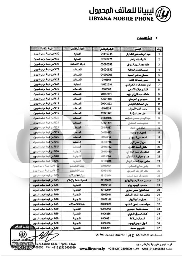 خاص..مع تكرار الأسماء بها.. وثائق بقرارات صرف مكافآت لموظفين بشركة ليبيانا بقيمة تجاوز المليون