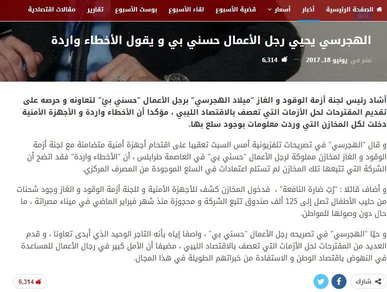 خبر صحيفة صدى الاقتصادية بخصوص تصريحات الهجرسي