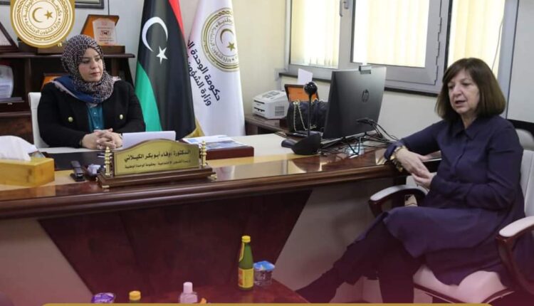 عقدت وزير الشؤون الاجتماعية بحكومة الوحدة الوطنية “وفاء الكيلاني” اليوم الثلاثاء اجتماعاً ، مع سفيرة فرنسا لدى ليبيا .