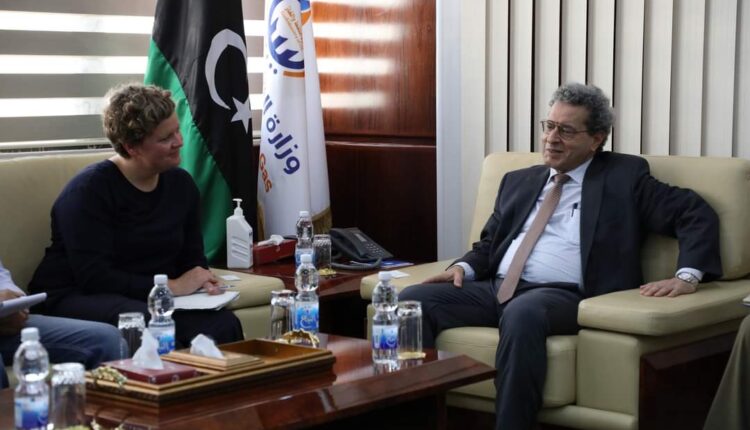 اجتمع وزير النفط والغاز بحكومة الوحدة الوطنية “محمد عون”، مع وفد السفارة الألمانية بليبيا برئاسة القائم بالأعمال بالسفارة الألمانية والوفد المرافق لها، “أنيكا انجلز” بحضور مدير عام الإدارة العامة للشؤون الفنية “مصطفي عبد الله بن عيسى” مدير عام الإدارة العامة للجودة والصحة والسلامة والبيئة “عبد الناصر الأمين قنيدي” .