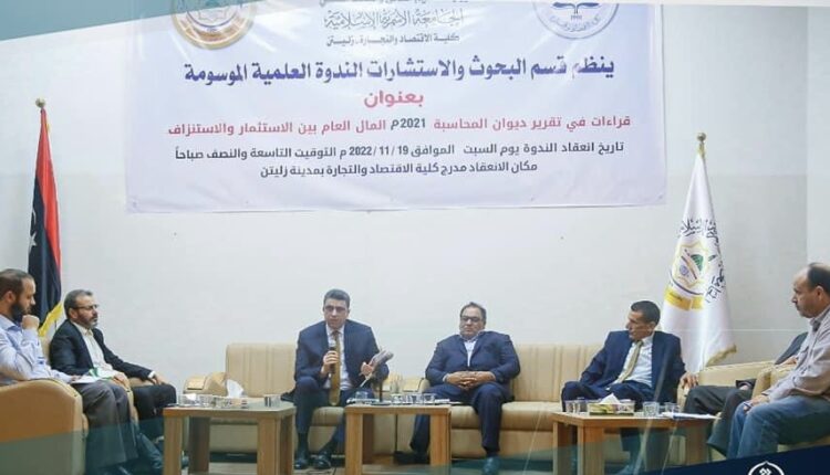 وكانت هذه الندوة بحضور رئيس ديوان المحاسبة خالد شكشك، ووزير التعليم العالي عمران القيب، ورئيس الجامعة الأسمرية الإسلامية محمد عبد الحفيظ.