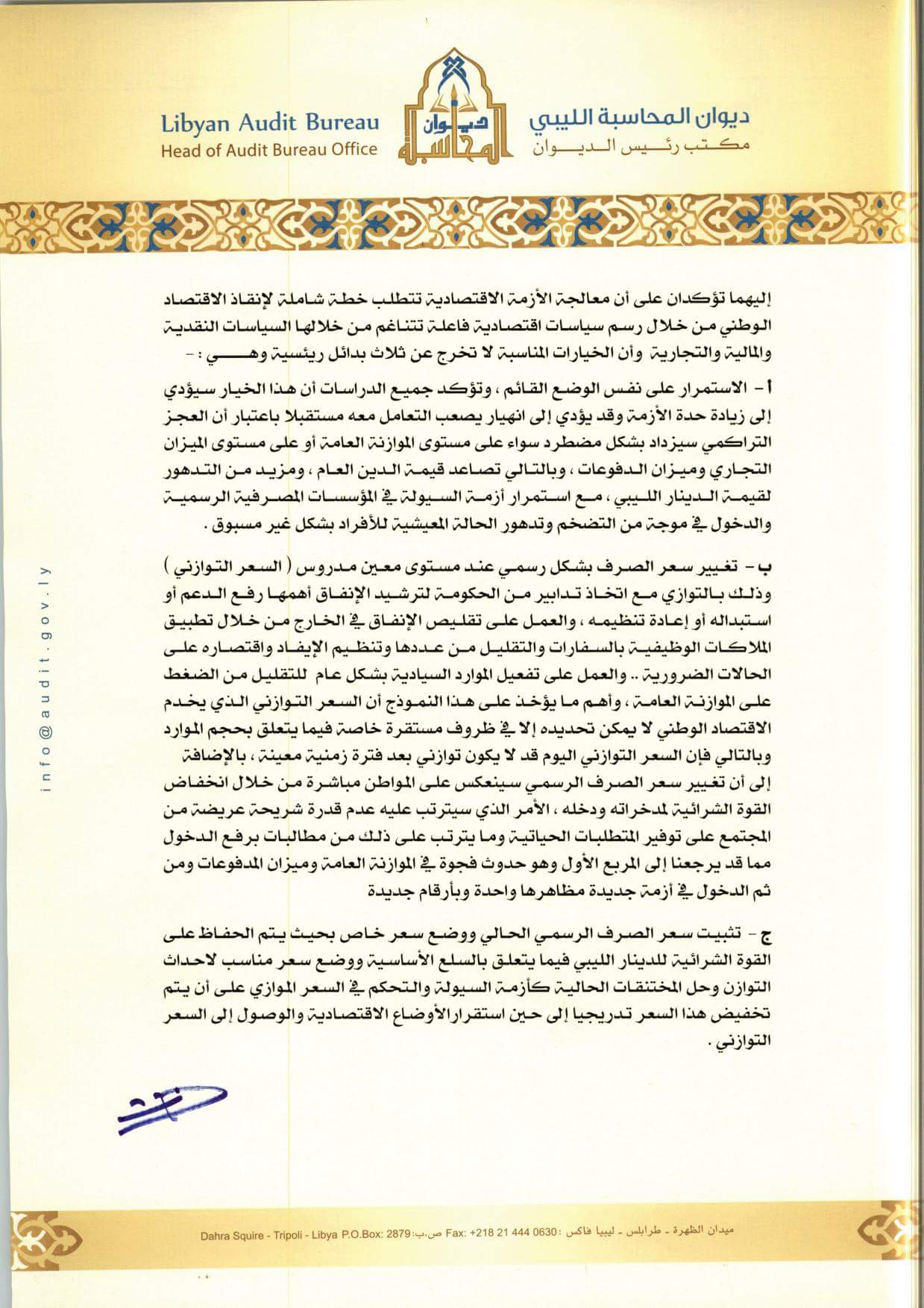 • ديوان المحاسبة يؤكد للمصرف المركزي و الرئاسي أن عدم إجراء إصلاحات اقتصادية هو قرار باستمرار الأزمة