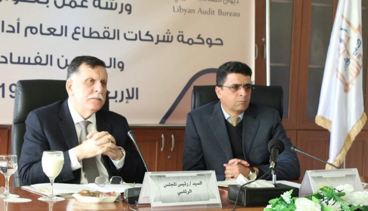 عقد صباح اليوم رئيس ديوان المحاسبة بطرابلس” خالد شكشك” ورشة عمل بعنوان ” حوكمة شركات القطاع العام أداء لتحسين الأداء والحد من الفساد ” وذلك بحضور رئيس المجلس الرئاسي لحكومة الوفاق الوطني “فائز السراج” و وزير التخطيط المفوض “الطاهر الجهيمي” ووزير المالية المفوض” فرج بومطاري” و وزير الاقتصاد المفوض “علي العيساوي” ووزير المواصلات المفوض” ميلاد معتوق” ووكيل ديوان المحاسبة ورئيس مجلس التخطيط الوطني ورئيس مجلس إدارة شركة الكهرباء القابضة و مدير عام المركز الوطني لدعم القرار ورئيس مركز تنمية وتطوير المراكز الادارية وعدد من مدراء الشركة الليبية للاستثمار وعضو أكاديمي مستقل.