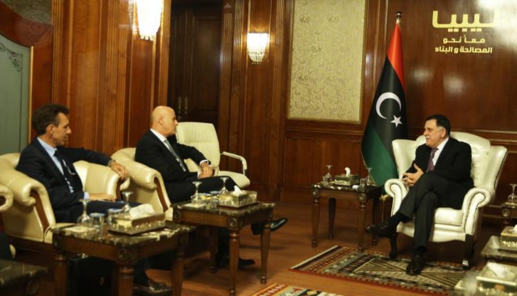 عقد فائز رئيس المجلس الرئاسي لحكومة الوفاق الوطني اليوم الإثنين إجتماعاً مع السفير الإيطالي لدي ليبيا جوزيبي بيروني وقد رافق السفير وفد من شركة إيني الإيطالية للنفط والغاز، يضم المدير التنفيذي للشركة السيد كلاوديو ديسكاليسي، ومدير العمليات السيد انطونيو فيلا، ونائب المدير التنفيذي للشرق الأوسط السيد فؤاد الكريكشي، ونائب المدير التنفيذي لشمال افريقيا السيد انطونيو بانزا.