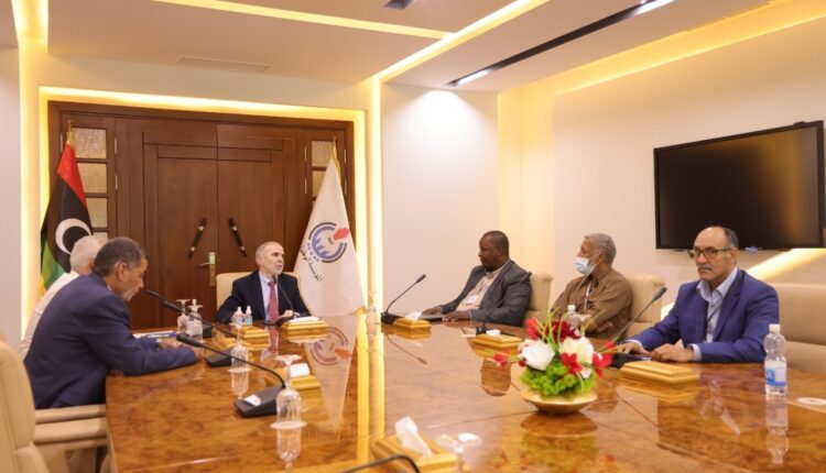 عقد رئيس مجلس إدارة المؤسسة الوطنية للنفط مصطفى صنع الله اجتماعاً مع عمداء بلديات ( القطرون، براك الشاطئ، الغريفة ، وادي البوانيس)