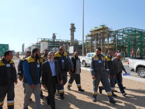 ‎بعد ذلك قام السيد رئيس مجلس الادارة بزيارة تفقدية للمجمع شملت المقرات السكنية وغرف استراحات العاملين بالمصنع والمركز الطبي ومركز الإطفاء وغرفه التحكم الرئيسية وورش الصيانة والمختبر ، واستمع الى شروح وافية عن سير العمل والمشاكل التي تعترض العاملين، وأبدى اعجابه الشديد بالعناصر الوطنية التي تقوم بتشغيل وصيانة هذا الصرح النفطي الضخم.