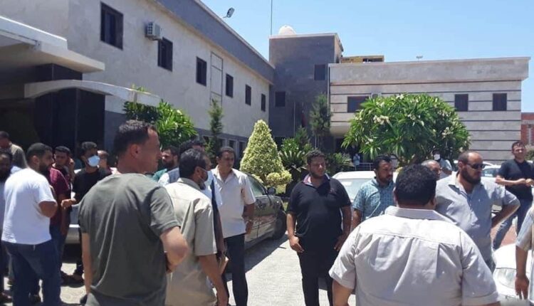 عمال شركة النظافة يحتجون أمام وزارة الحكم المحلي بطرابلس نتيجة تأخر مرتباتهم