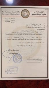 خصص المجلس الرئاسي بحكومة الوفاق الوطني مبلغ 2 مليار دينار لمعالجة ما أسماها الظروف الاستثنائية التي تمر بها الدولة الليبية وذلك لمعالجة آثار الاشتباكات بالعاصمة طرابلس، وكذلك تم تخصيص مبلغ 484 مليون دينار لوزارة الدفاع.