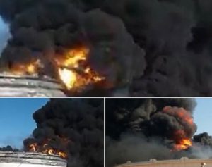 أفادت المؤسسة الوطنية للنفط عن إصابة الخزان رقم 12 فور انطلاق العمليات القتالية الخميس الماضي، حيث أصيب الخزان جراء قذيفة أشعلت فيه النيران ولم تتمكن وحدات الإطفاء المتواجدة في الميناء من إخماد الحريق حتى أتى على كامل الخزان.