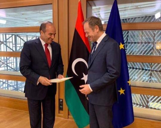 وقد أعرب رئيس المجلس الاوروبي عن سعادته بتعيين سفير لدولة ليبيا لدى الاتحاد الاوروبي وعبّر عن استعداده التام للتعاون من أجل دعم استقرار وأمن ليبيا للوصول الى دولة ديمقراطية مدنية ومن أجل أن تستعيد ليبيا دورها الاقليمي والدولي .