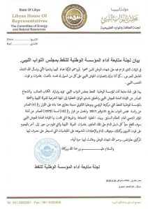 وذكرت اللجنة أن موطن المؤسسة الوطنية للنفط القانوني هو مدينة بنغازي بناءا على القرار الصادر من مجلس النواب والمعدل من قرار صادر في عام 1979 ميلادي، وقد كتبت اللجنة في هذا البيان أن هذا التصرف سيقطع كل سبل الدعم أمام العابثين بمقدرات الدولة الليبية والتي تقوم بالهجوم على قوت الليبيين وكذلك ستتوقف الاعتمادات المشبوهة على ما وصفتهم بالمليشيات المسيطرة على مصرف ليبيا المركزي .