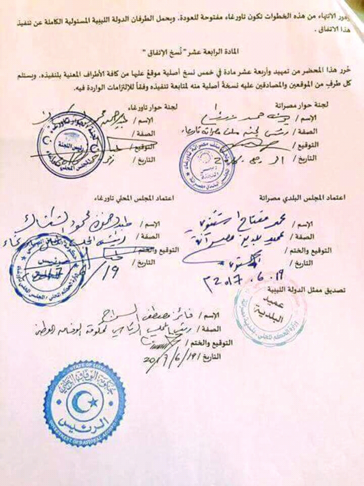• ماذا سيترتب علي الدولة الليبية بمصادقتها علي صلح تاورغاء و مصراته
