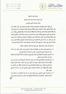 واختتم مجلس إدارة المصرف المركزي بيانه بالتأكيد على أنه سيتخذ كافة الإجراءات القانونية من خلال القضاء المستعجل لوقف ما أسماها “ممارسات تعسفية غير مسؤولة”، محمّلا كل من ينفذ هذا القرار المسؤولية القانونية والأخلاقية عمّا يمكن أن ينجم من مشاكل وخسائر حال تطبيقهم لهذا القرار.