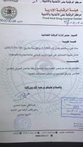 أعلن مركز الرقابة على الاغذية والادوية اليوم عبر صفحته على الفيس بوك أنه قام بي اعدام كمية من الزيت النباتي وعلامته التجارية الصفوة برفقة عناصر من جهاز الحرس البلدي بغدامس وذلك لعدم مطابقتها المواصفات القياسية المعتمدة. .