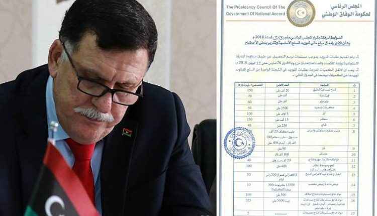 ففي 26 من شهر مارس و تحديدا في يوم الاثنين أصدر المجلس الرئاسي لحكومة الوفاق الوطني قرارا بتخصيص مبلغ “مليار و500 مليون” دولار لتوريد السلع الأساسية للمواطن عن طريق المستندات برسم التحصيل قبيْل حلول شهر رمضان المبارك.