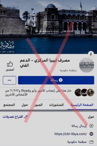 أوضح مصدر بمصرف ليبيا المركزي بأن صفحة “مصرف ليبيا المركزي – الدعم الفني” لا علاقة للمركزي بها محذراً المواطنين بعدم التعاطي مع الصفحات المشبوهة وإعطائها بياناتهم الشخصية أو أية معلومات مهمة من شأنها إلحاق الضرر بهم.