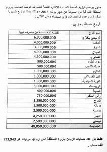ونشر المصرف عبر صفحته الرسمية جداول توزيع الحصة المسلمة للإدارة العامة لمصرف الوحدة الخاصة بفروع المنطقة الشرقية من السيولة عن شهر 6 2018، وذلك وفقاً لتوزيع السيولة المقررة من مصرف ليبيا المركزي البيضاء.
