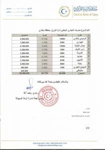 مصرف ليبيا المركزي البيضاء يوزع 337 علي المصارف