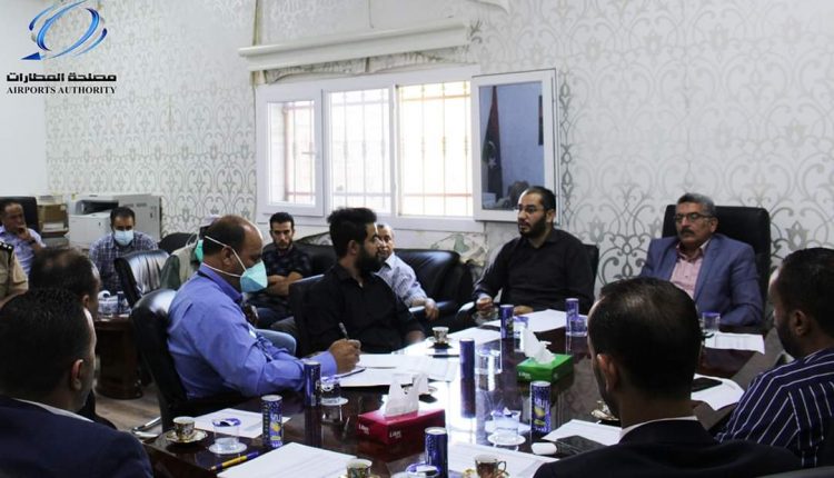 بحث المسئولون في مصلحة المطارات بالعاصمة طرابلس تنفيذ دليل إجراءات الوقاية من فيروس كورونا “كوفيد – 19” في عملية الطيران المدني.