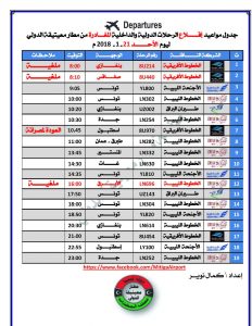 أعلن مطار معيتيقة الدولي عن مواعيد إقلاع ووصول الرحلات الدولية والداخلية مـــن وإلى مطـار ليوم غداً الأحد الموافق 21 يناير