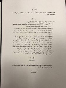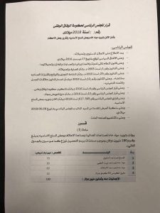 كما نص القرار المقترح على أن تكلف اللجنة التنفيذية المشكلة بأحكام قرار المجلس الرئاسي رقم 363 لسنة 2018 بتنفيذ هذا القرار لضمان سرعة تنفيذه، على أن تصرف مكافأة مالية وقدرها 2000 دينار لرئيس وأعضاء اللجنة إضافة إلى مكافأة 1000 دينار للأشخاص المستعان بهم في تنفيذ هذا القرار.