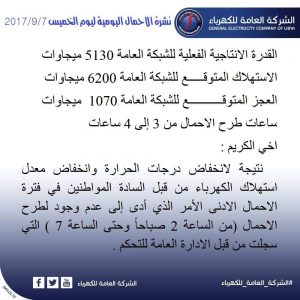 نشرة الأحمال اليومية للشركة العامة للكهرباء