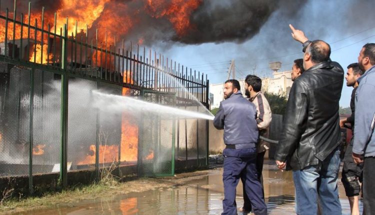 نشوب حريق كبير بمحطة كهرباء بمنطقة السبعة بطرابلس