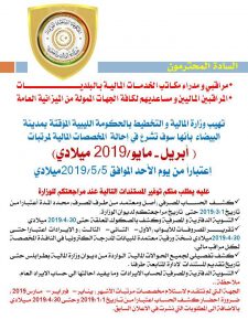 وطالبت الوزارة مراقبي ومدراء مكاتب الخدمات المالية بالبلديات والمراقبين الماليين لكافة الجهات بضرورة توفير المستندات المطلوبة والتي تشمل كشوفات الحسابات المصرفية والتسوية الدفترية وتقرير المصروفات وكشف الحوالات المالية الواردة من وزارة المالية بطرابلس.