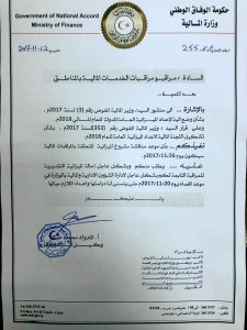 حددت وزارة المالية بحكومة الوفاق الوطني يوم السادس والعشرين من هذا الشهر موعدا لمناقشة مشروع الميزانية المتعلقة بالمراقبات المالية، مطالبة بضرورة إحالة الميزانية التقديرية للمراقبات في وقت أقصاه العشرين من الشهر الجاري.