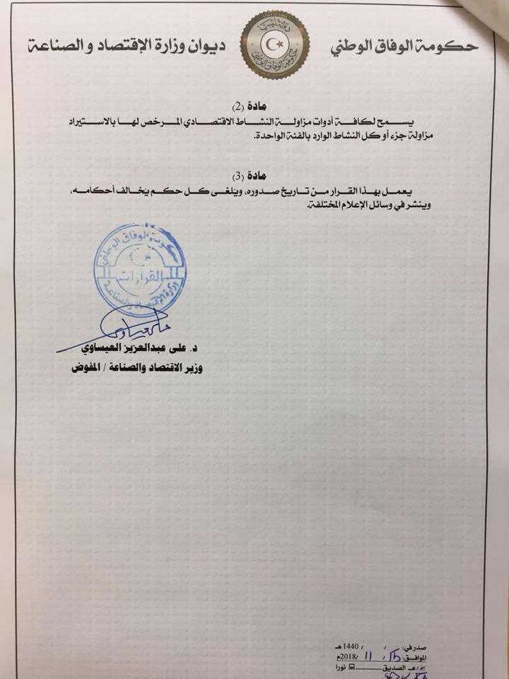 العودة إلى "وزير اقتصاد الوفاق يصدر مرسوما يصنف فيه الفئات السلعية التي يجوز استيرادها"