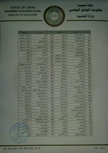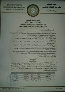 وشمل القرار 107 مدرسة من مناطق طرابلس المركز وحي الأندلس وأبي سليم وسوق الجمعة وتاجوراء وعين زارة وقصر بن غشير وجنزور والزاوية وصرمان وبني وليد والخمس والجميل وزوارة، كما نصّ القرار على إحالة مسؤولي تلك المدارس على النائب العام للتحقيق معهم فيما نسب إليهم من تهم.