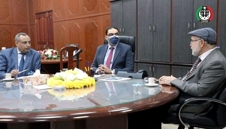 استقبل وزير العدل بحكومة الوفاق الوطني “محمد عبدالحميد” اليوم الثلاثاء بمكتبه بمقر الوزارة ، رئيس لجنة توحيد مؤسسات الدولة “مفتاح المنصوري” ونائبه “احتيوش فرج”.