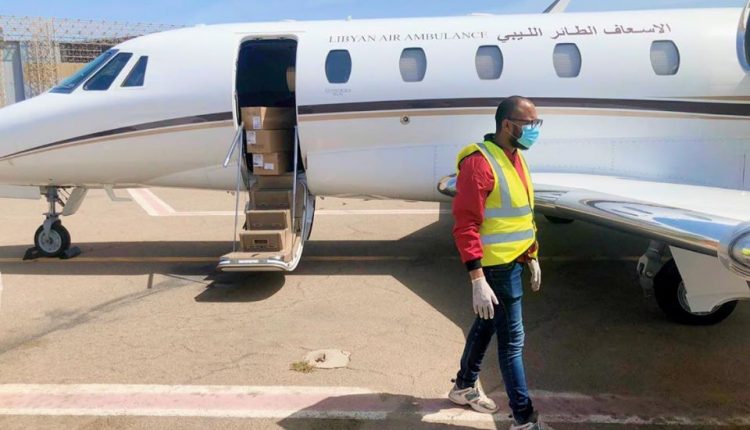 وصلت طائرة جهاز الإسعاف الطائر إلى مطار معيتيقة الدولي اليوم الأحد، تقل على متنها شحنة من الأدوات الطبية اللازمة، ضمن جهود الدولة في مكافحة انتشار فيروس كورونا المستجد (كوفيد 19).