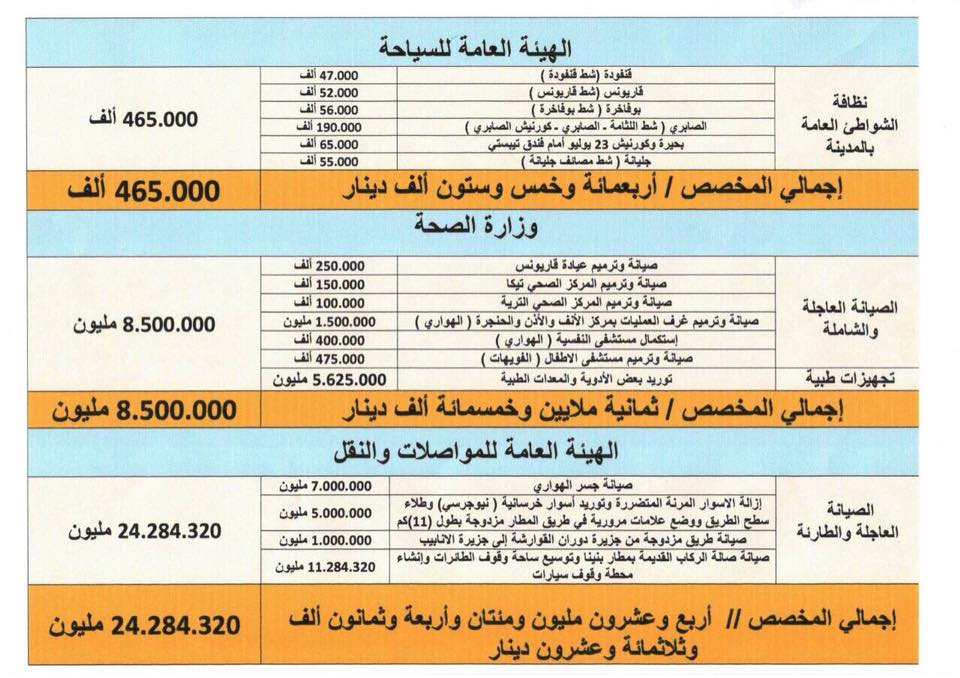 العودة إلى "138 مليون ديناراً إجمالي ما تمّ تخصيصه لمدينة بنغازي" المبالغ التي تمّ تخصيصها لمدينة بنغازي خلال عام 2017 4 التالي السابق