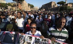 حيث ينام العديد من طالبي اللجوء في شوارع روما بسبب نقص المساكن. وفى يوم السبت، سار الآف من طالبي اللجوء والمهاجرين والمؤيدين عبر العاصمة الايطالية يحملون لافتات تقول “لاجئون ليسوا إرهابيين” ودعوا إلى وقف عمليات الطرد والى توفير المأوى المناسب للاجئين.