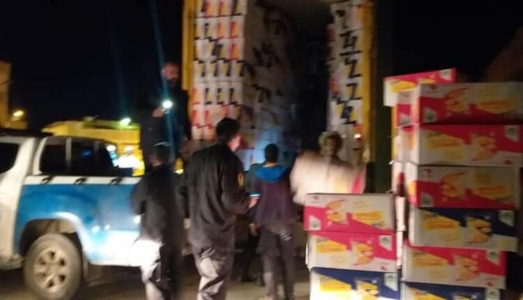 ضمن الحملة الوطنية لحماية المستهلك أعلن مفتشو مركز الرقابة على الأغذية والأدوية فرع البيضاء – الجبل الأخضر بالتعاون مع الحرس البلدي فرع الدعم والدوريات المنطقة الشرقية والتعاون مع أمن مديرية البيضاء، ضبط 5 شاحنات محملة بمواد غذائية نوع شبس وأخرى مادة التبغ سجائر مهربة من دولة سوريا.