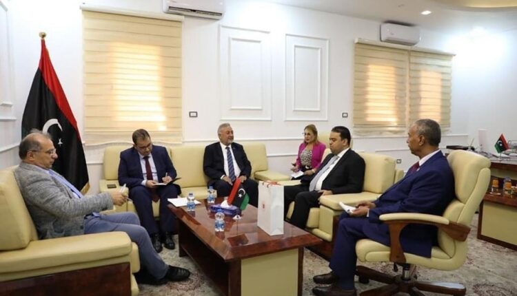 عقد وزير العمل والتأهيل بحكومة الوحدة الوطنية “علي العابد” اجتماعًا مع سفير جمهورية تركيا لدي ليبيا “كنان يلماز” بمكتبه صباح اليوم وذلك بحضور مدير مكتب التعاون الدولي بالوزارة “عادل العقبي” .