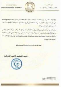 وأكد ” المشرى” أنه وإعلاء لمبدأ المحاسبة فإنه على إستعداد تام للمثول امام القضاء وفقاً لاجراءات صحيحة متى طلب منه ذلك، مشيراً إلى ضرورة ترسيخ مبدأ الشفافية ومنها حق الليبيين في معرفة مايخص الشأن العام.
