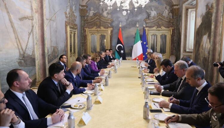 عقد الوفد الليبي برئاسة رئيس الوزراء بحكومة الوحدة الوطنية “عبدالحميد الدبيبة” اجتماعاً تقابليا مع الحكومة الإيطالية برئاسة رئيسةالوزراء “جورجيا ميلوني”.