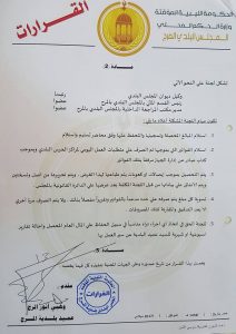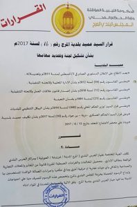كما نصت المادة الثانية من القرار عل. أن تشكيل اللجنة سيكون على النحو التالي : وكيل ديوان المجلس البلدي رئيسا رئيس القسم المالي بالمجلس البلدي بالمرج عضوا مدير مكتب المراجعة الداخلية بالمجلس البلدي بالمرج عضوا