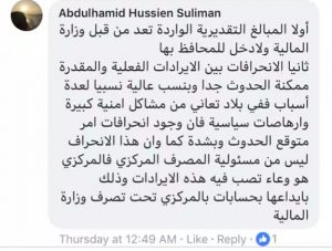 هذا وقد لاقى هذا المنشور إعجاب أكثر من ثلاثمائة شخص فيما قامت مجموعة من المتابعين ومن ضمنهم ذوي اختصاصات اقتصادية ومالية بالتعليق على ماورد بالمنشور.
