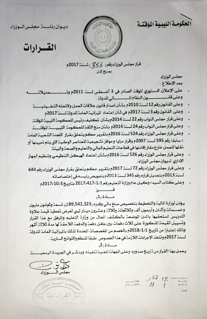 الحكومة المؤقتة تغطي قيمة علاوة التدريس لثلاثين مدينة