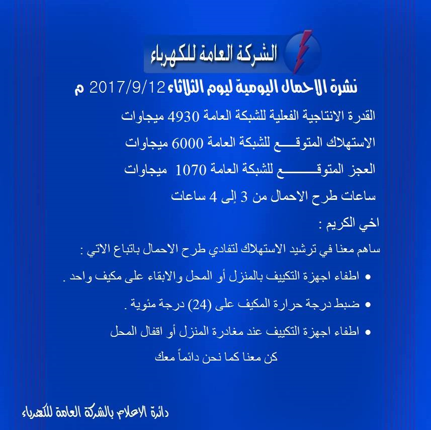 انخفاض ساعات طرح الأحمال اليوم إلى ثلاث ساعات